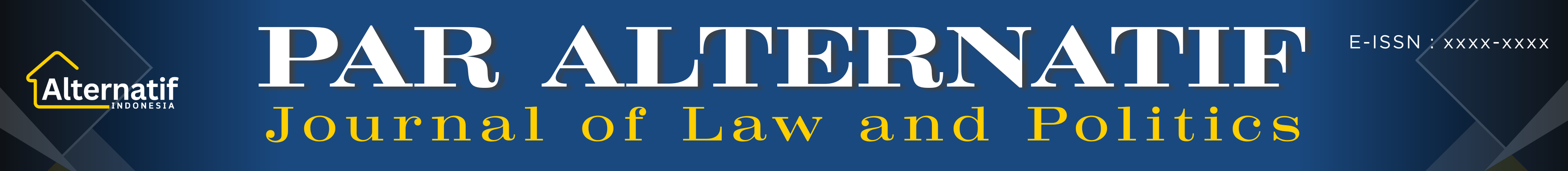 PAR Alternatif: Journal of Law and Politics, is a scholarly journal that publishes high-quality research and conceptual studies in the fields of law and political science, with a particular focus on the interaction between legal systems, political dynamics, and public policy in both national and global contexts. The journal aims to promote critical, innovative, and research-based analyses that contribute to a deeper understanding of contemporary legal and political issues. The journal covers a broad range of topics, including constitutional and administrative law, democracy and governance, human rights, legal politics, international law, and law and technology. It welcomes contributions in the form of empirical research, normative legal studies, case analyses, and conceptual papers that support the advancement of knowledge in law and political science.